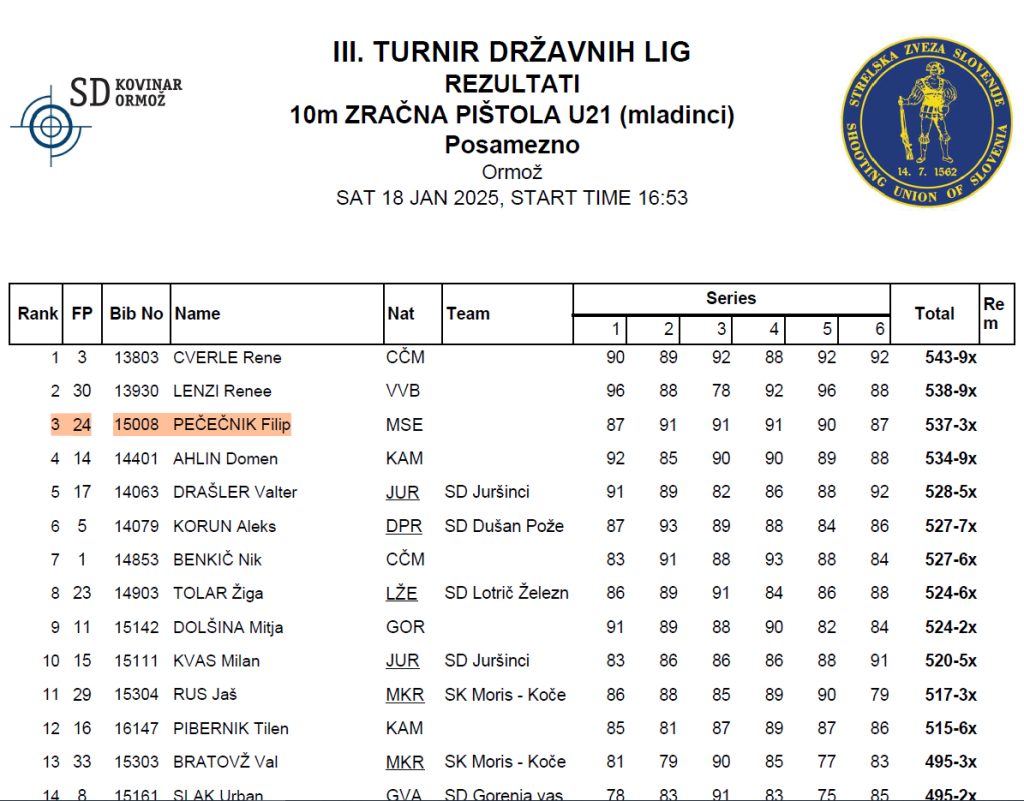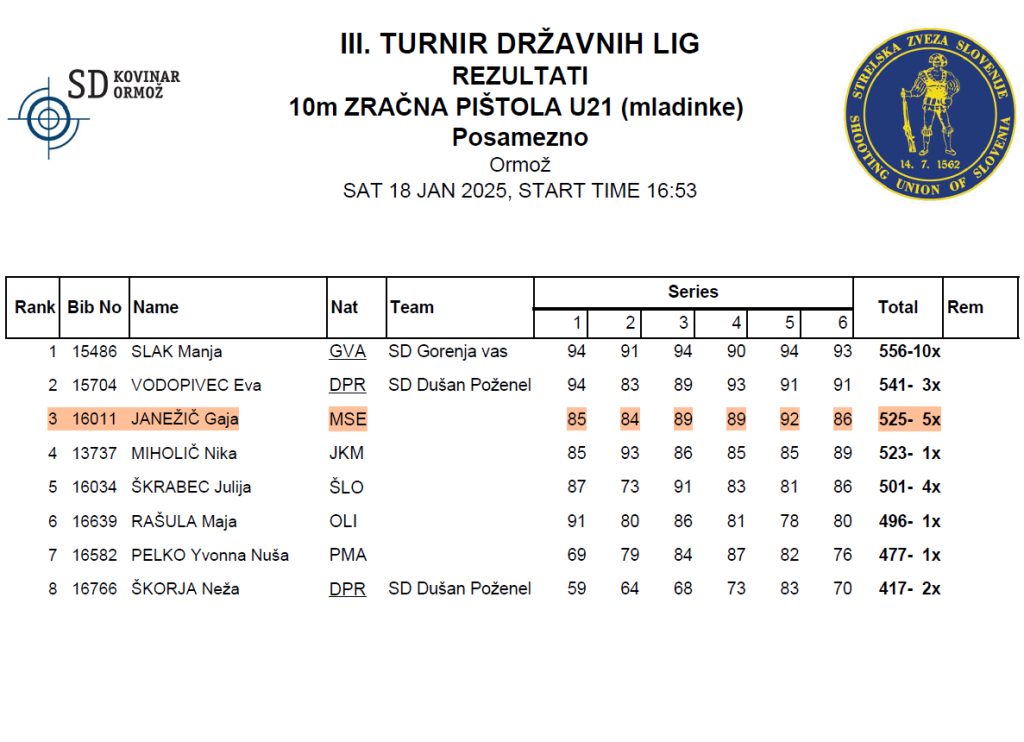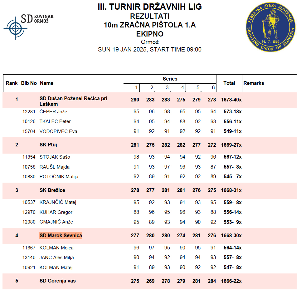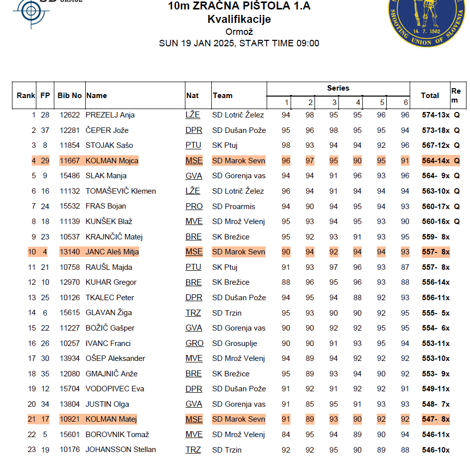 V soboto 18. 01. in nedeljo 19. 01. 2025 je v Ormožu izveden 3. krog 1. A državne lige za standardno pištolo in puško po mednarodnem programu. Ekipa SD Marok je s 1668 krogi zasedla 4. mesto od 12 ekip. Najboljši posameznici sta bili Lija Janežič med deklicami in Mojca Kolman med članicami. Obe sta zasedli drugo mesto in osvojili srebrno kolajno. Med mladinci je Filip Pečečnik zasedel tretje mesto in osvojil bronasto kolajno.
