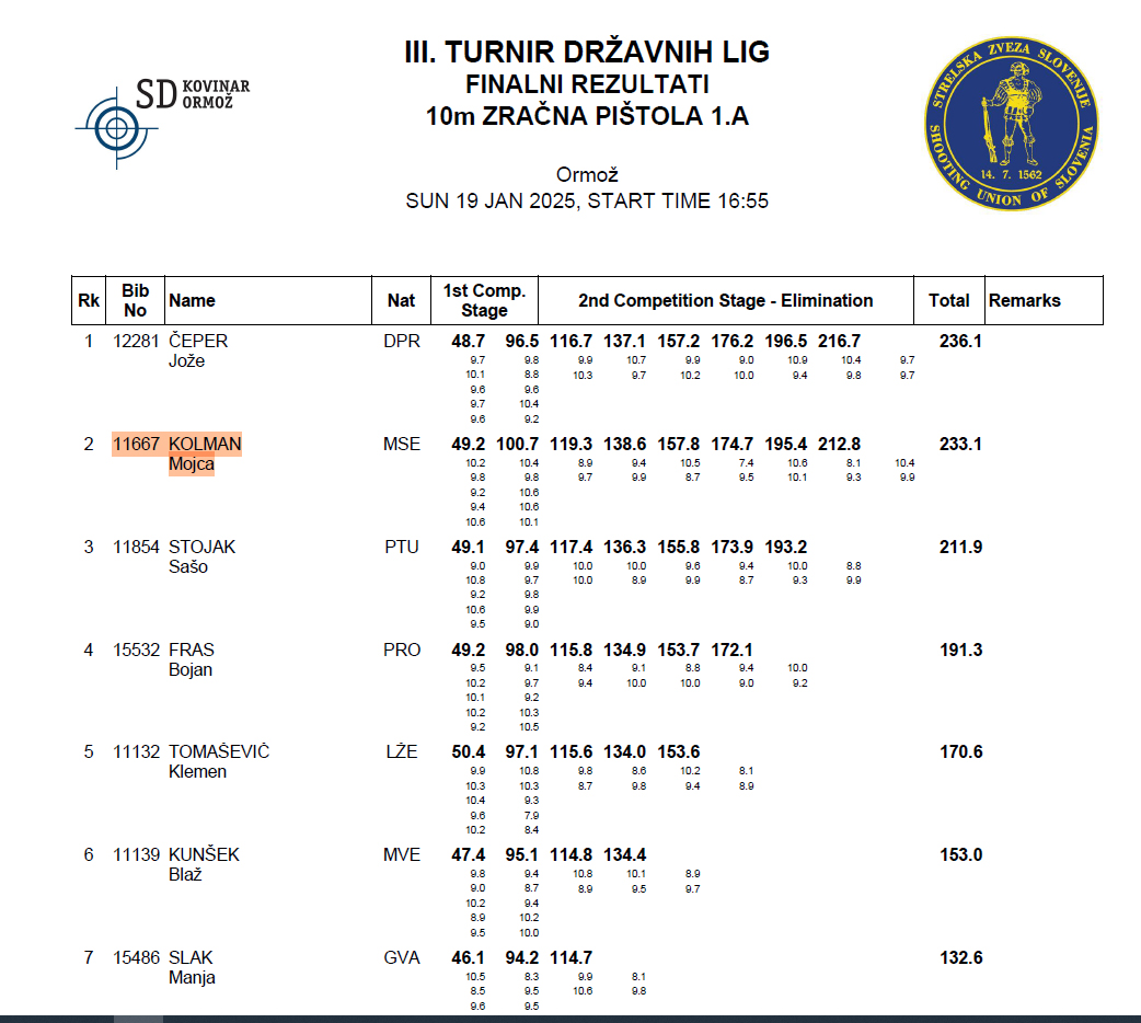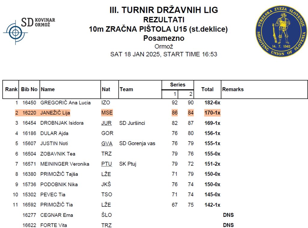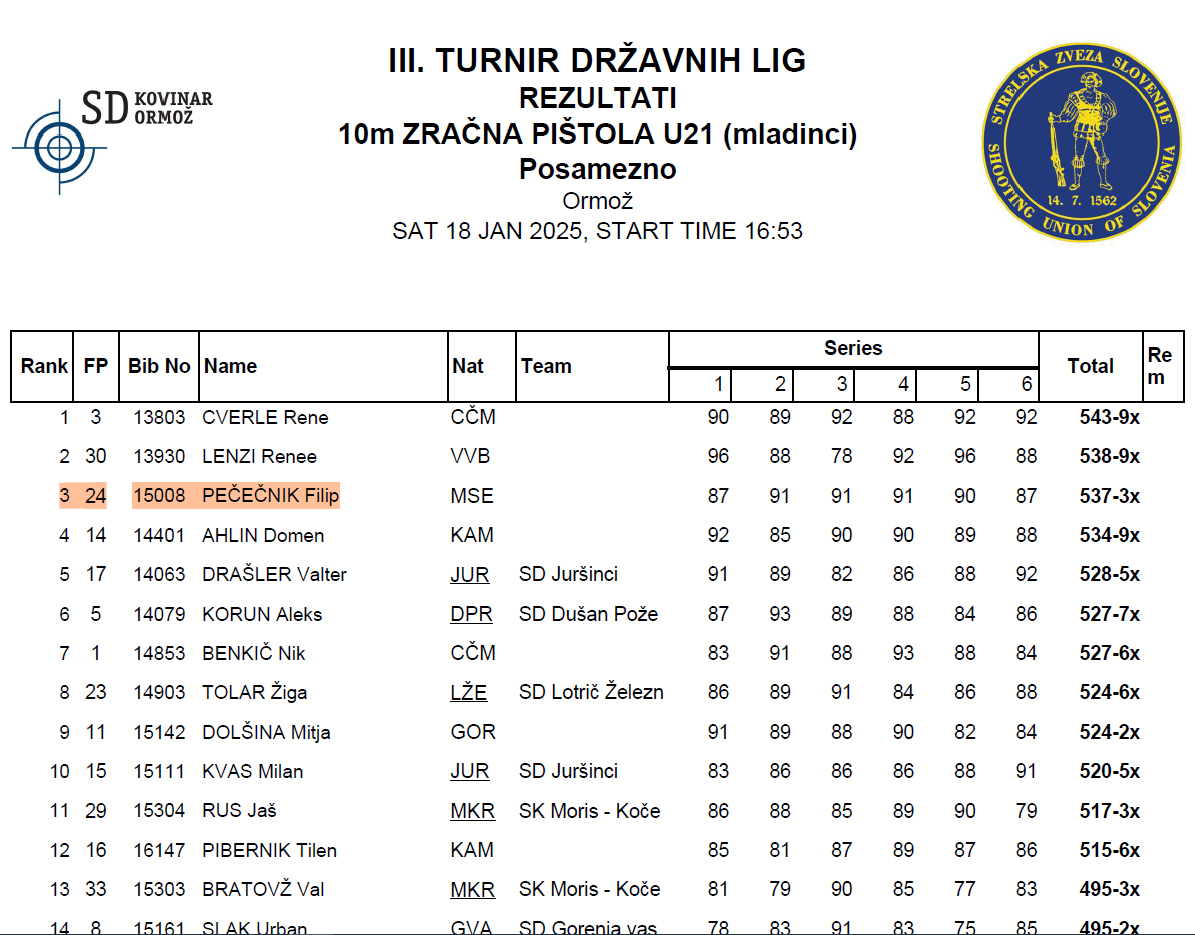 V soboto 18. 01. in nedeljo 19. 01. 2025 je v Ormožu izveden 3. krog 1. A državne lige za standardno pištolo in puško po mednarodnem programu. Ekipa SD Marok je s 1668 krogi zasedla 4. mesto od 12 ekip. Najboljši posameznici sta bili Lija Janežič med deklicami in Mojca Kolman med članicami. Obe sta zasedli drugo mesto in osvojili srebrno kolajno. Med mladinci je Filip Pečečnik zasedel tretje mesto in osvojil bronasto kolajno.